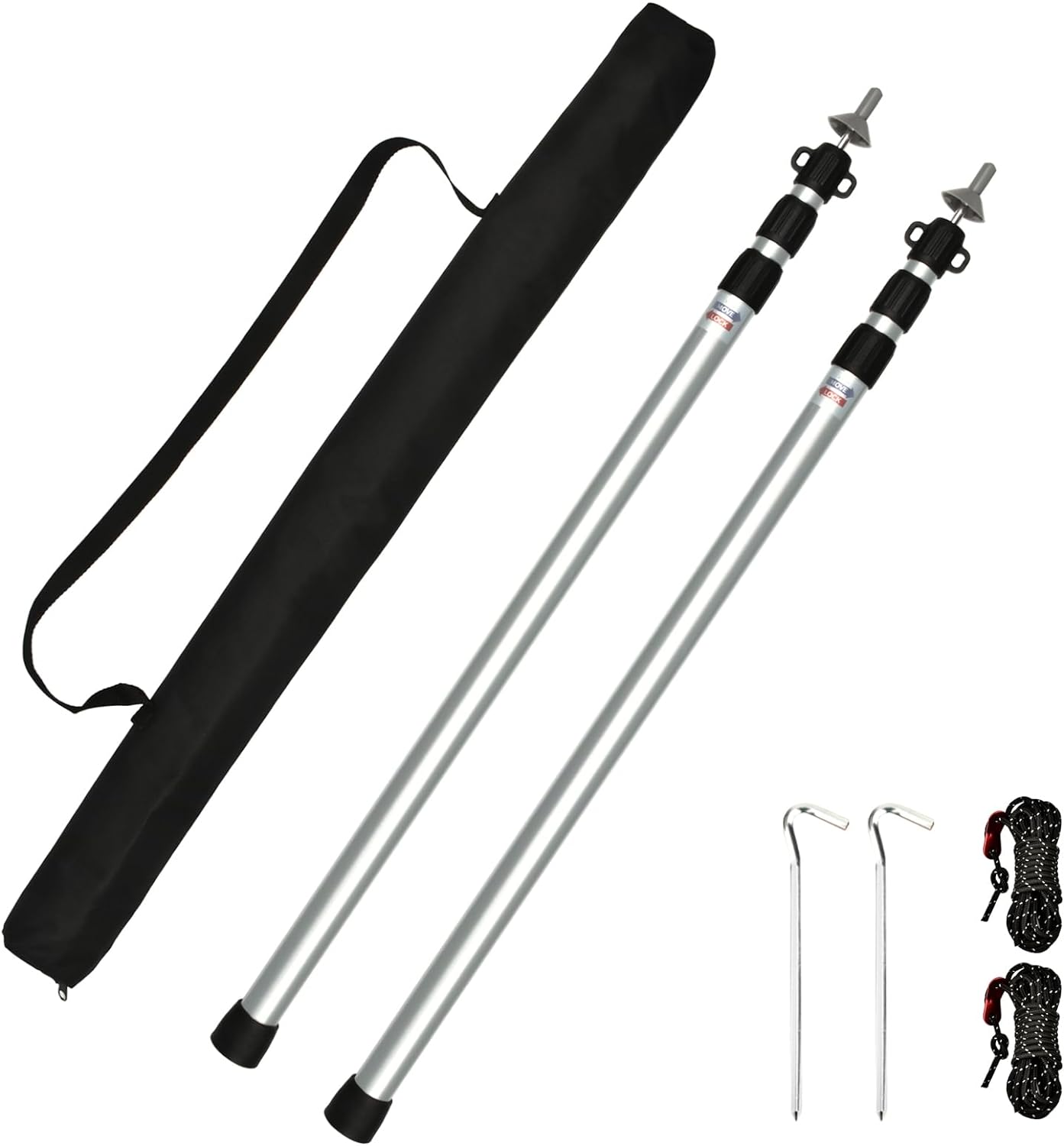 A napellenző rúd készlet dupla lyukakkal van ellátva, amelyeket a szélkötél rögzítésére lehet használni, míg a tartós gumisapka az alján megakadályozza a rúd elcsúszását.
